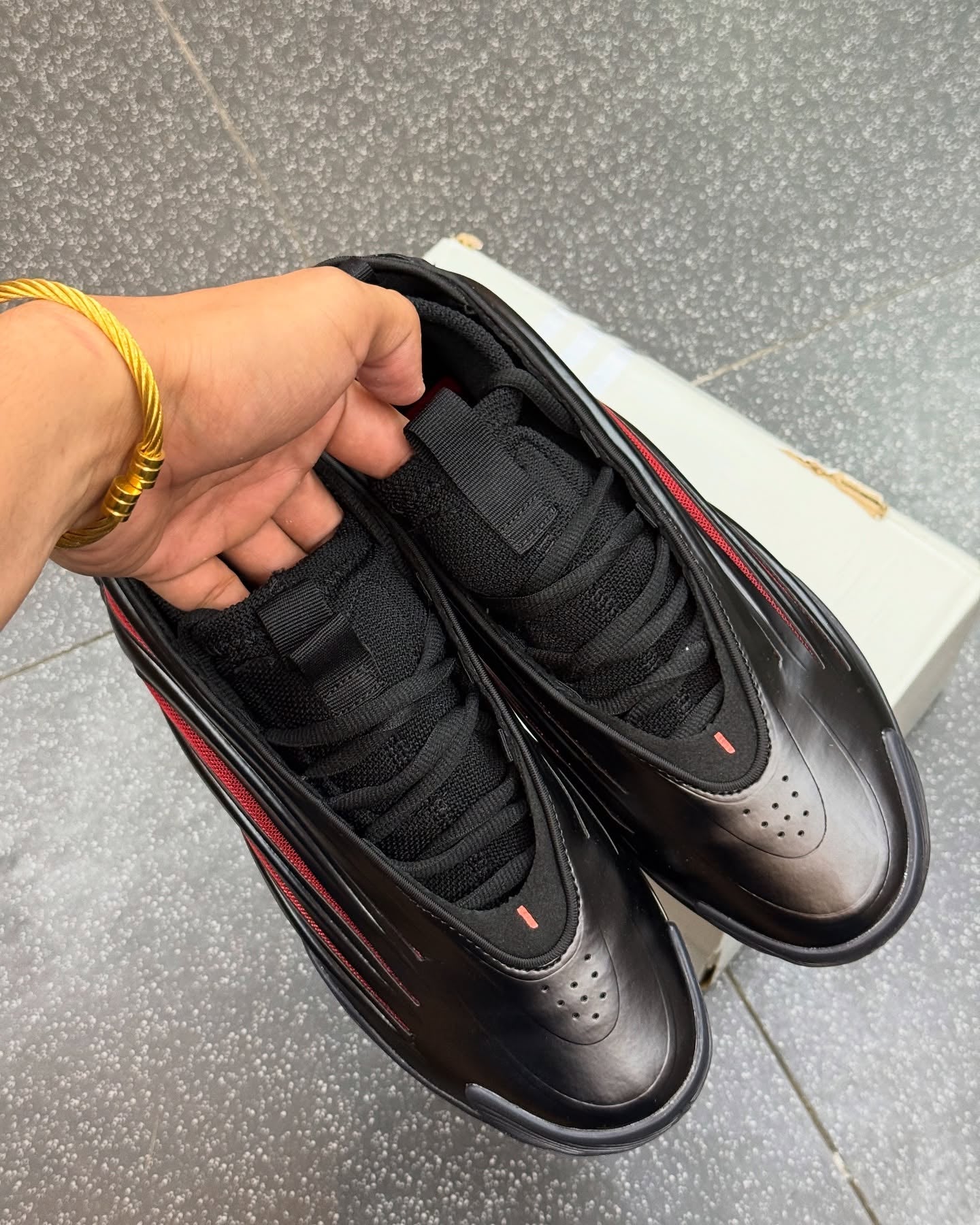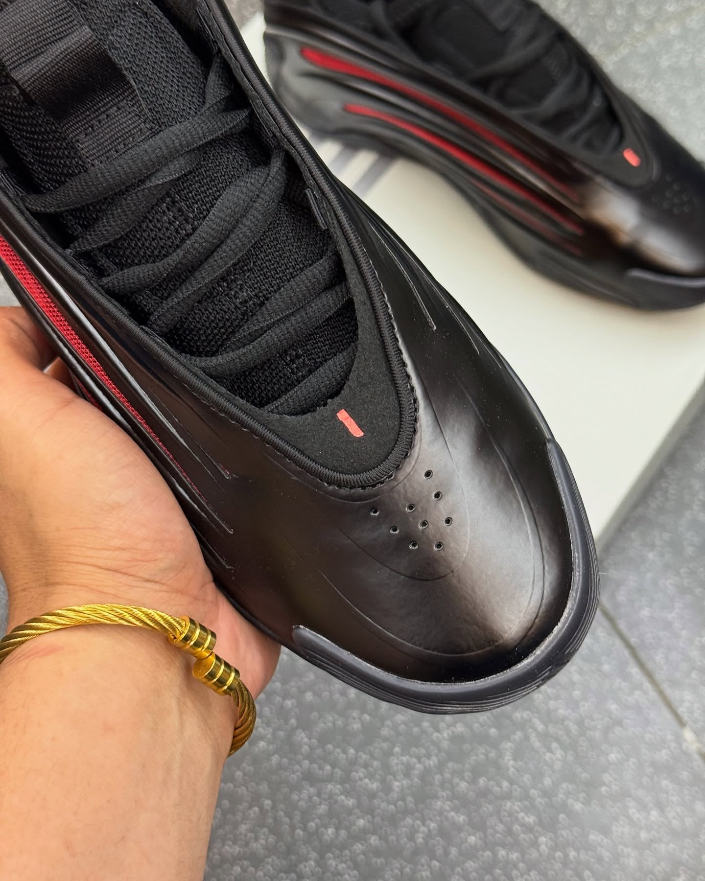 | Detalhes extras | Painéis laterais meshed vermelhos, branding “Three Stripes” e design inspirado em muscle-cars “Hell Cat”. Grailify |