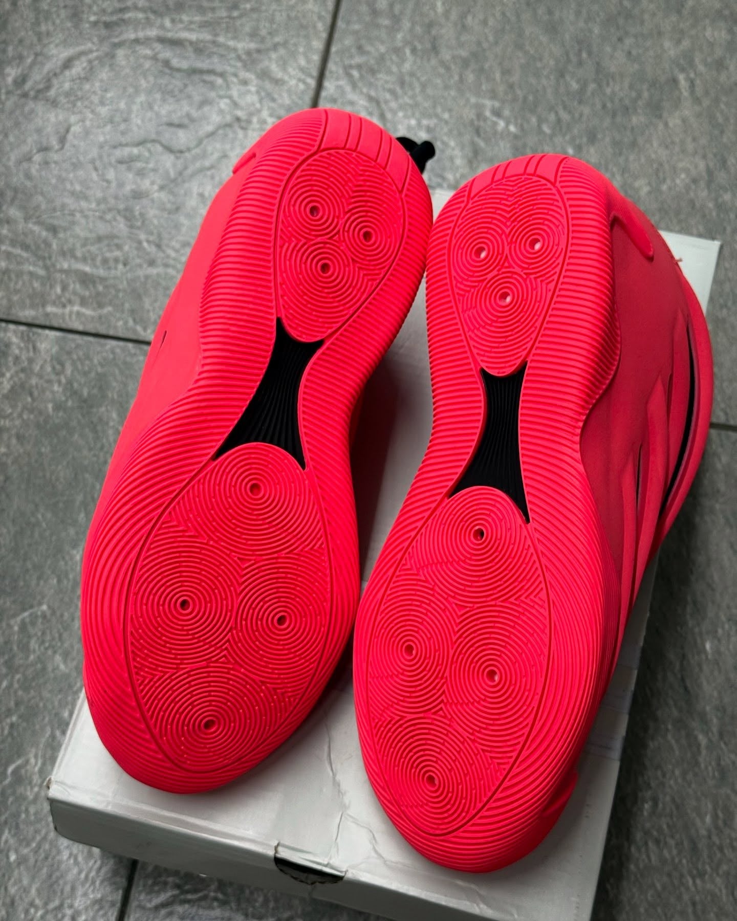 | Cabedal | Knit técnico de alta resistência com reforços em TPU translúcido vermelho |