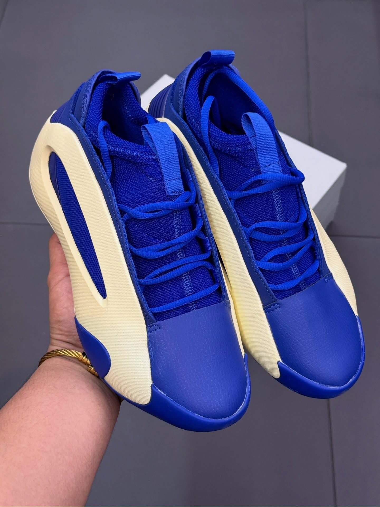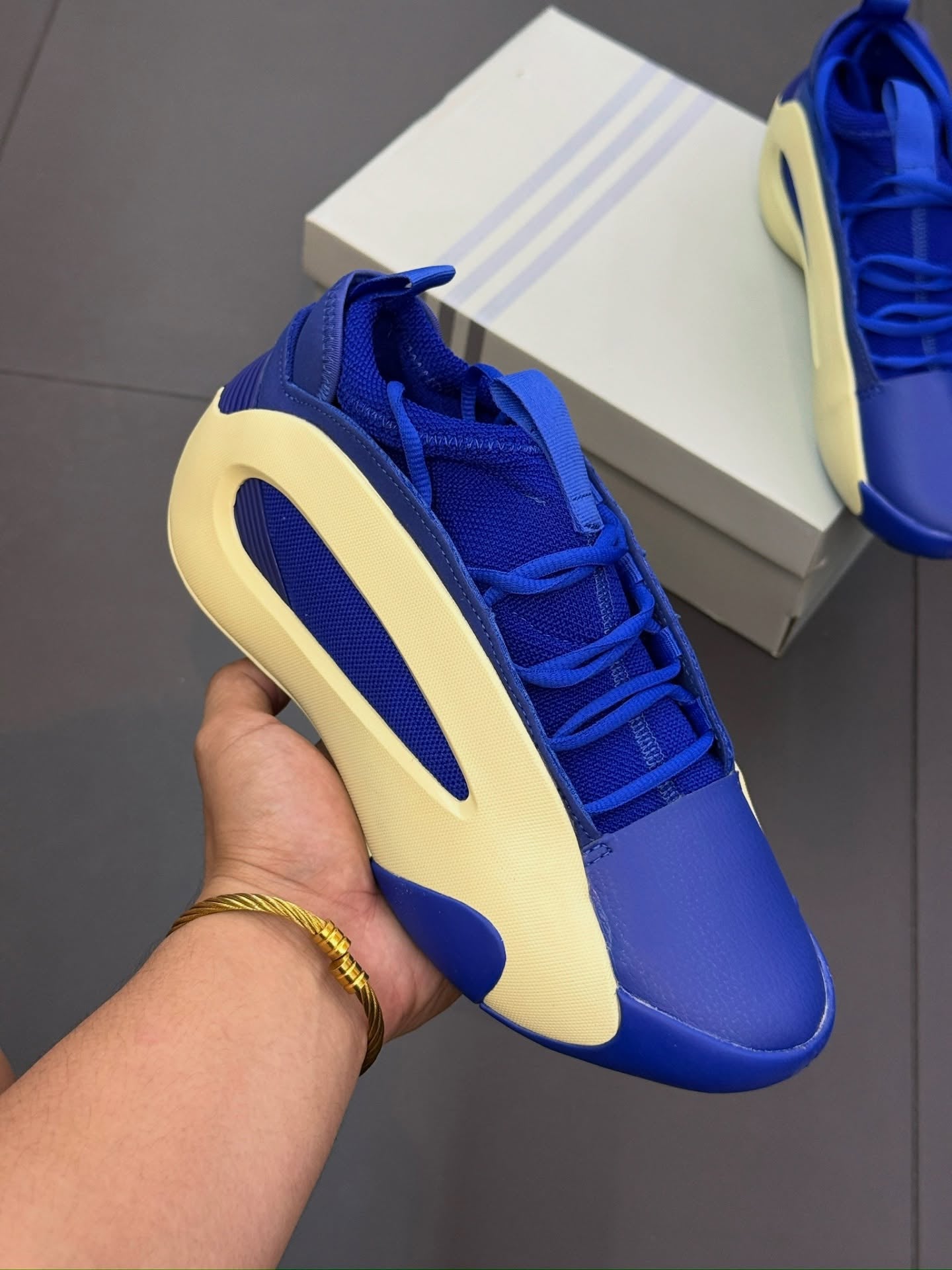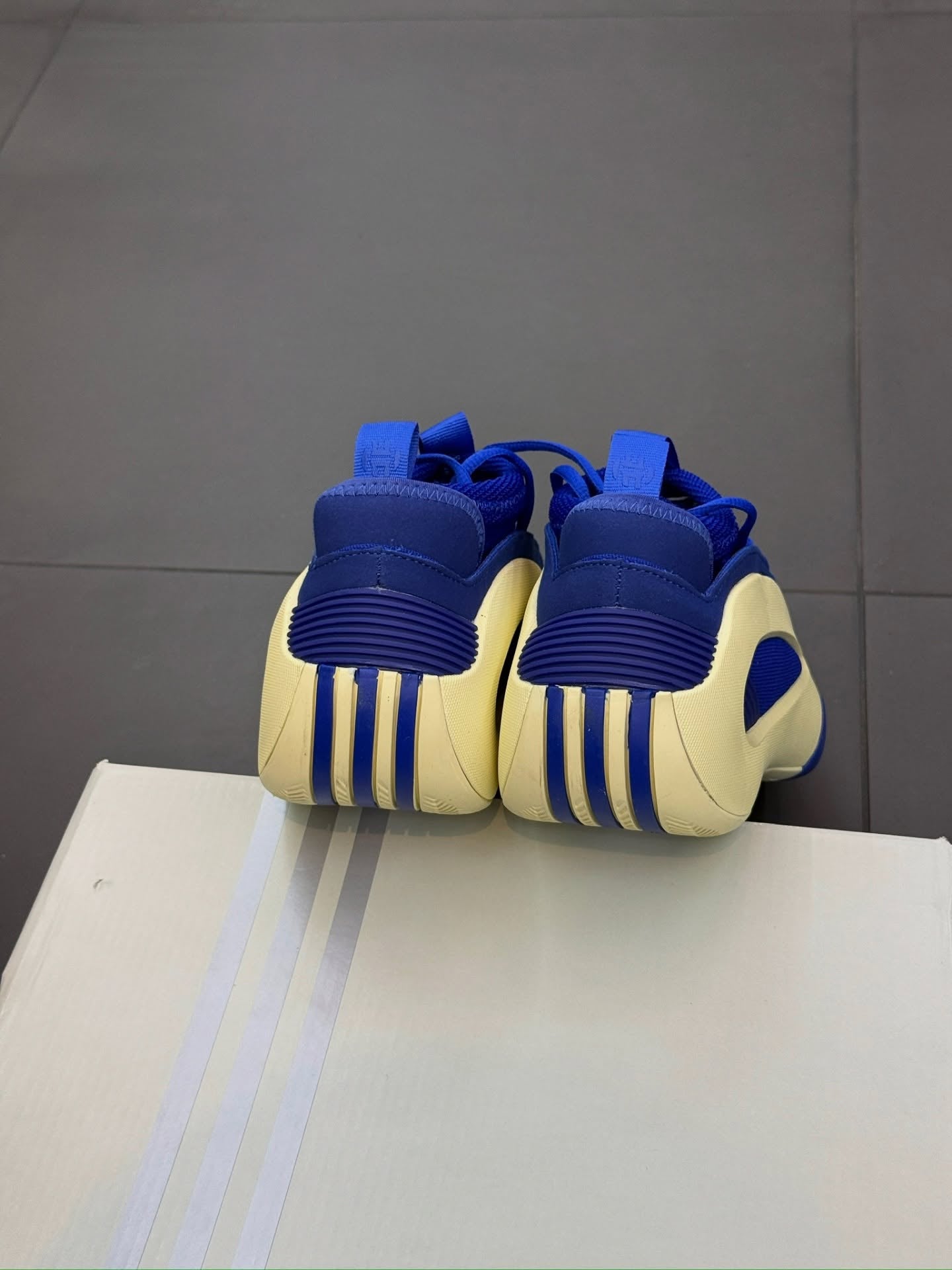 | Detalhes extras | Branding “Three Stripes” minimalista, assinatura Harden no calcanhar e recorte lateral esculpido |