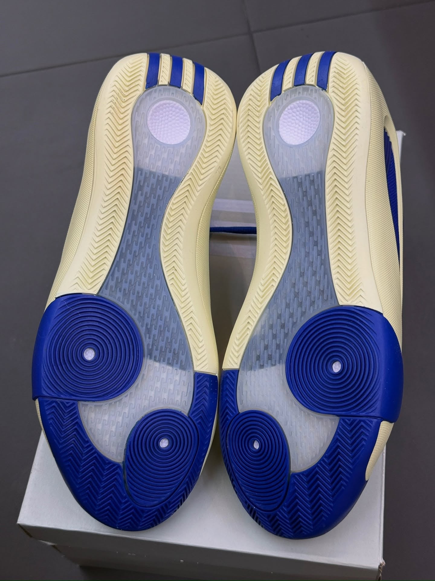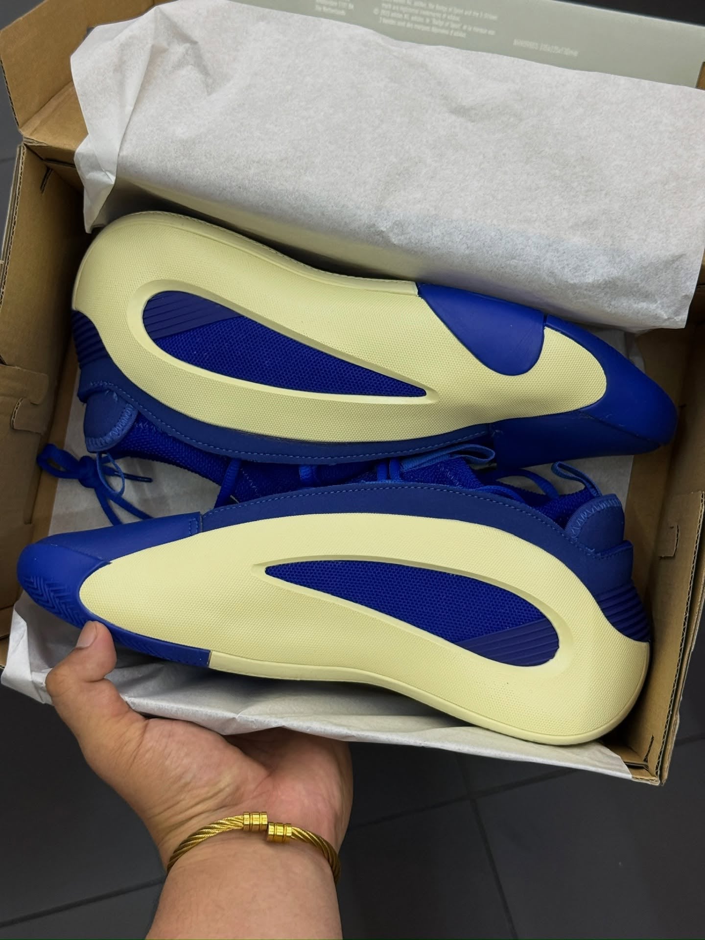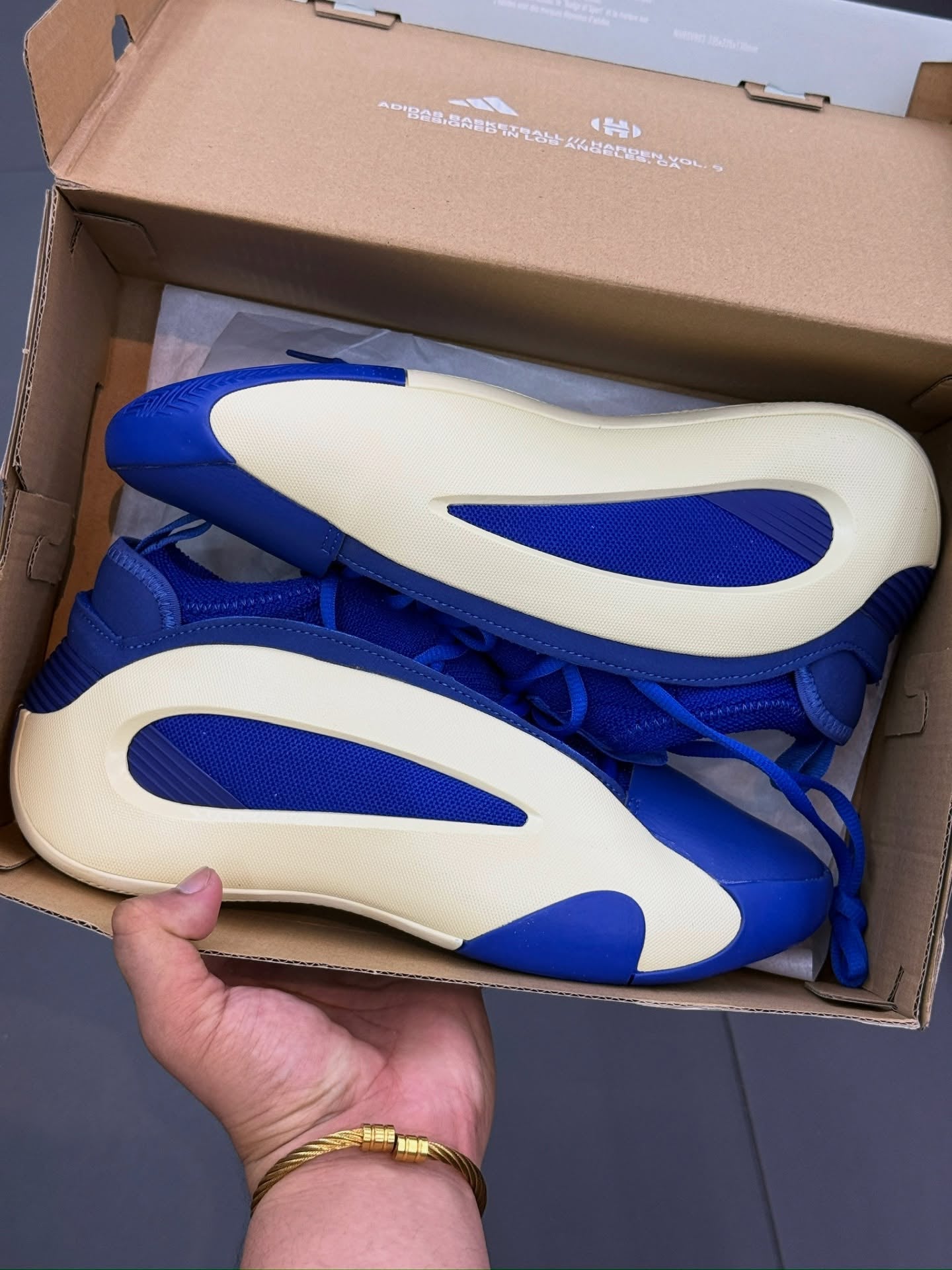 | Detalhes extras | Branding “Three Stripes” minimalista, assinatura Harden no calcanhar e recorte lateral esculpido |