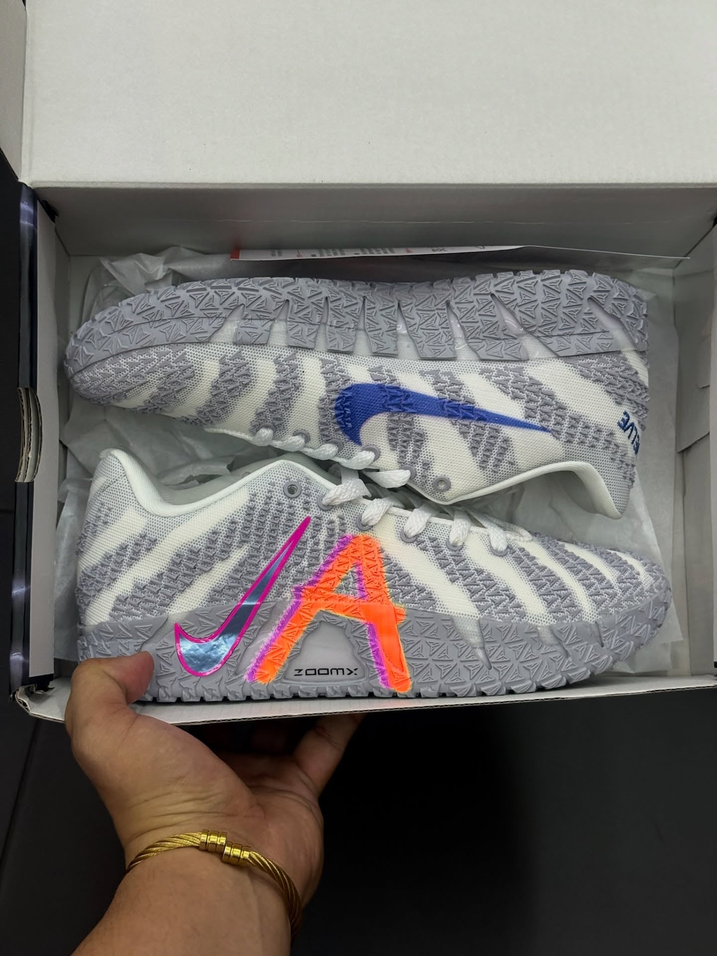 | Detalhes extras | Assinatura “Ja” na lingueta e logotipo lightning lateral em efeito Glow |